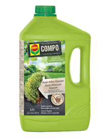 Compo Anti-Mos is een biologische geconcentreerde mosbestrijder op basis van pelargonzuur die u kan gebruiken in het gazon. Het zuur breekt de celwanden af en droogt het mos uit, maar is niet schadelijk voor het milieu. Compo Anti-Mos kan ook gebruikt worden bij lagere temperaturen: vanaf februari tot november, bij droog weer.